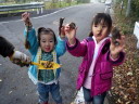 「ふがりの森」も秋が深まって、紅葉しはじめています。天候はまずまずですが、日が陰ると急に寒くなります。今日は峠を越えて車道まで歩きます。子どもたちが好きなドングリは少ないけれど、イノシシ(シカも?)の活動した跡やかわったキノコも発見し、こちらの森も結構面白い。