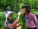 午後はお昼にタケノコを試食した(美味しかった!)後、森の自然観察。本来はまずは森に入って「森の神様」に挨拶するところですが、今回は「早い者勝ち」のタケノコ採りなので後回しになってしまいました。森の中は生きものの活動が盛んになっていました。いろいろな虫が動き回っていて、幼い姉弟は触ったり手にとったりして「体験」していました。お姉ちゃんにはすべての虫が「ゴキブリ」だそうですが、これからいろいろな虫の名前が出てくることでしょう。お目当てのヘビも姿を現してくれました(子どもたちは初めて見るヘビを怖がりませんでした。ヘビを怖がるのは親からの「刷り込み」?)。