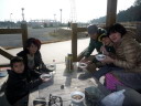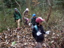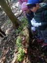 寒い冬の季節に突入しましたが、今日は小春日和、絶好の寒茸とり日和になりました。まずは山の神に挨拶。「今日もこの森で遊ばせてもらいます。よろしくお願いします」 この季節の「ふがりの森」はマムシもスズメバチのいません。静かです(でも散策する人は結構入っていました)。きのこが出そうな広葉樹の森に入っていきます。最初にナメコの倒木発見!でもすでに採られていました(ここは調査済み)。参加者のお母さんがきのこ発見!エノキタケ!やりました!がぜん意欲が出てきてみんな真剣に探し始めます。でもきのこ探しはそう簡単ではありません。なかなか見つかりません。次はヒラタケの倒木。ここも少し古くてとる価値はありません。そしてついにきれいなヒラタケ発見!お昼に調理していただくには十分な量が採れました。